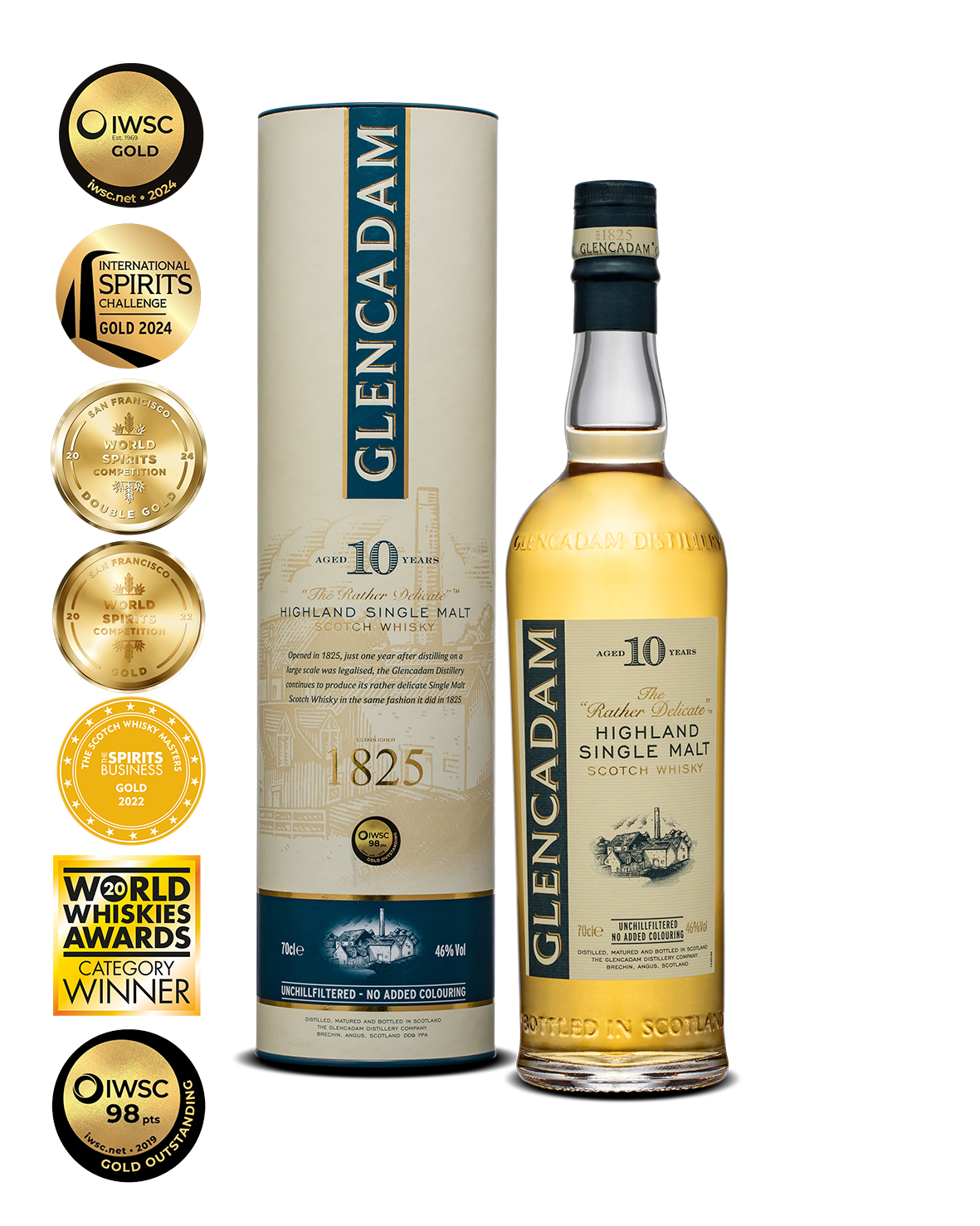 Multi-award winning Glencadam 10 Years Old is fragrant, with a grassy freshness and notes of citrus and spice, whilst maintaining a rounded smoothness on the palate.